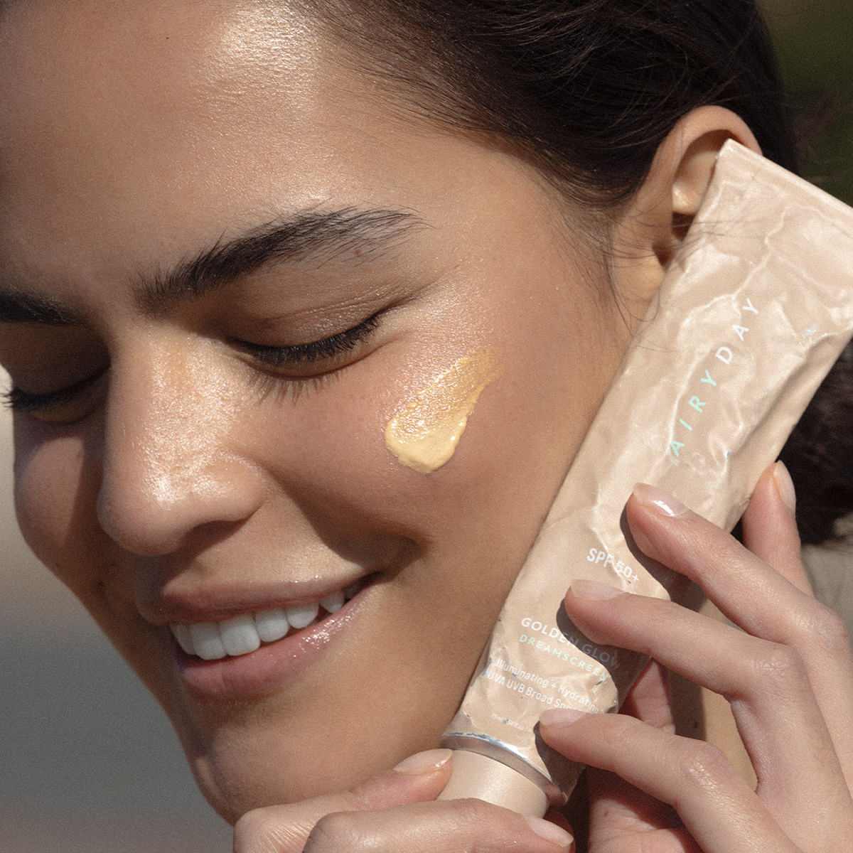 Glisten for a sun-kissed glow with our high-performing and luxuriously blendable dreamy SPF cream for instantly luminous and touchable skin. Her blend of Vegan Collagen, Niacinamide, Blue Light Protection and Vitamin C, E and F delivers moisturising, brightening and anti-ageing goodness to leave skin glowing and soft as satin. Use alone or as a hydrating and smoothing primer before makeup. Luxuriously scented with champagne and peonies.
